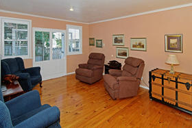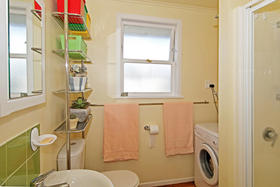The polished timber floors boards throughout have a wonderful warm glow and are so practical and easy care. The 2 bedrooms are generously proportioned and are serviced by the practical combined bathroom/laundry facilities. The master bedroom being king sized with wonderful mirrored wardrobes complete with his and hers organizers.